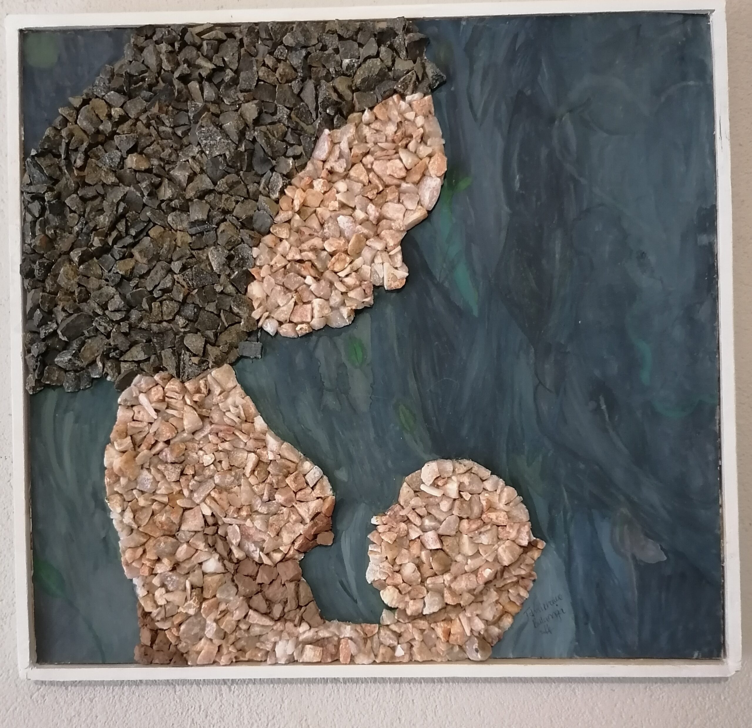 High-quality and create art piece made of recycled paper, stones, and wood